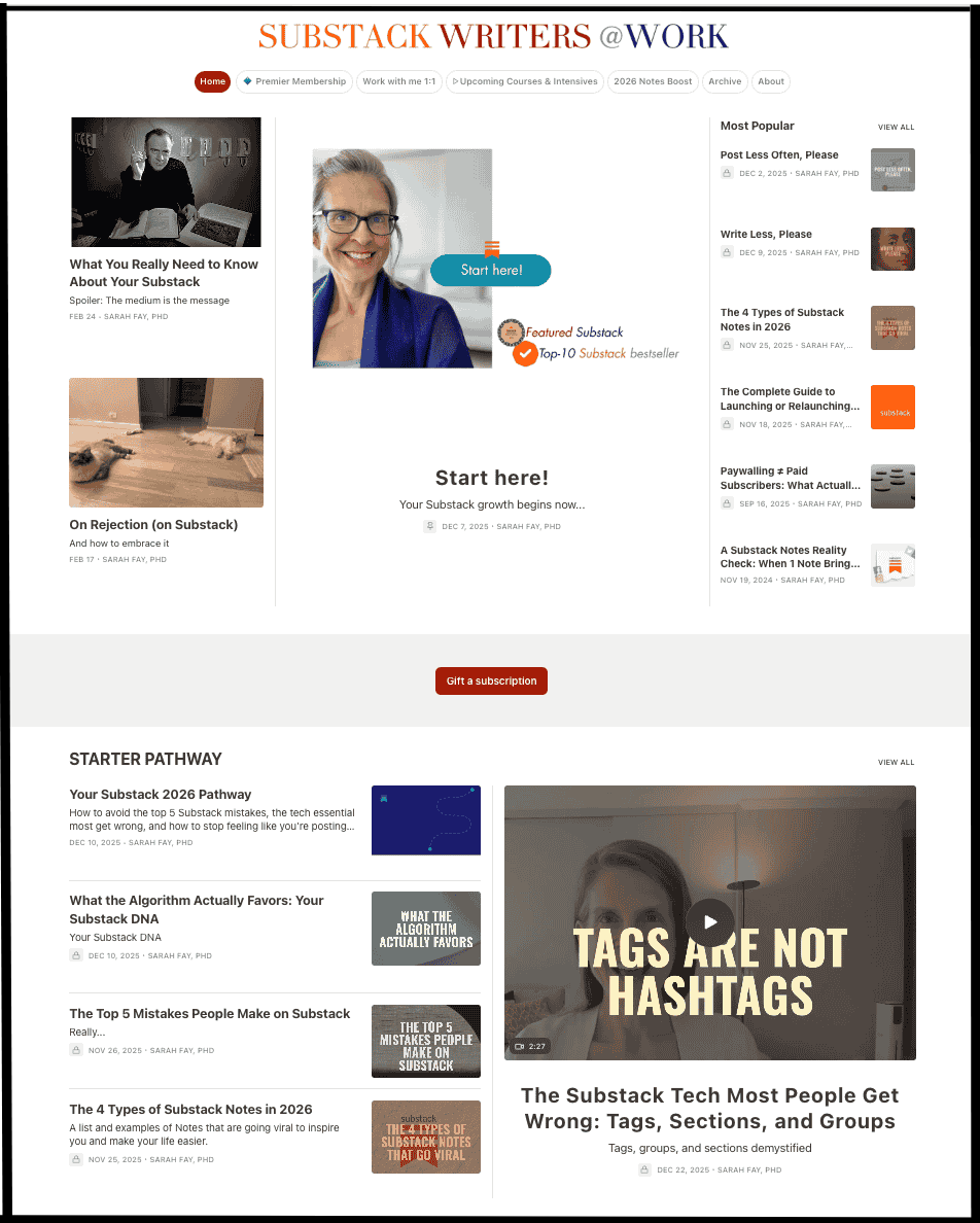SW@W homepage | Premier Membership homepage | Notes Boost Challenge | 24/7 Substack Chat | Upcoming courses & Intensives | Substack Workshop Library | Archive | Manage your subscription | Work with me 1:1