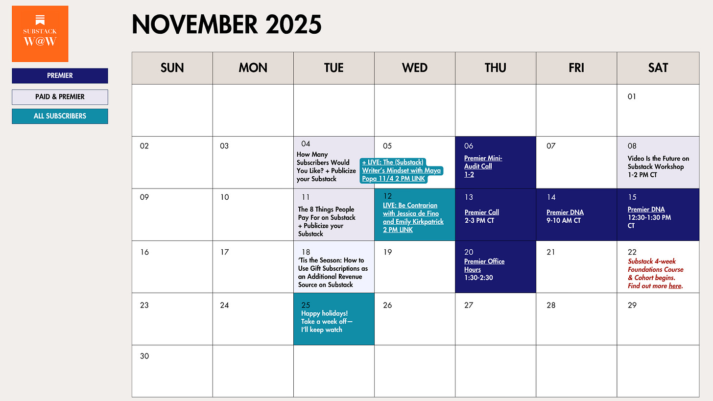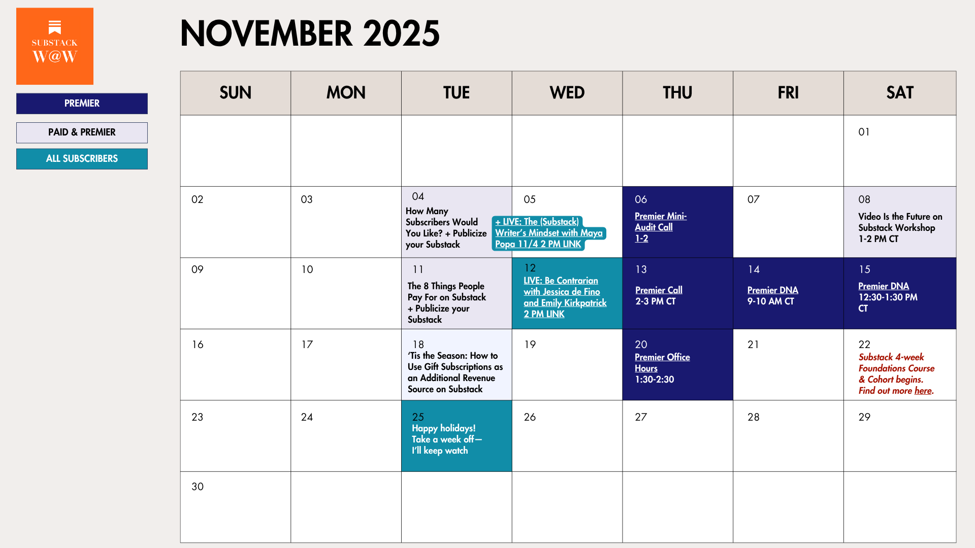 Monthly Premier Member Call (attend one)—Your Substack DNA + Streamlining your offerings