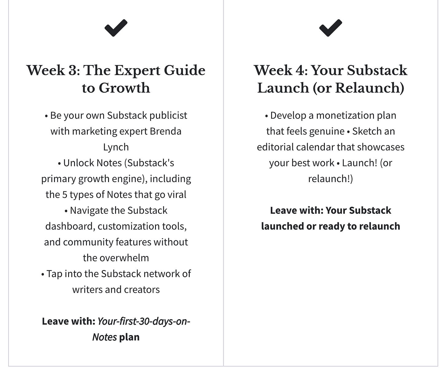 If you’re ready to lessen the Substack learning curve and accelerate how quickly you grow, earn an income, and produce your best work on Substack, join us: